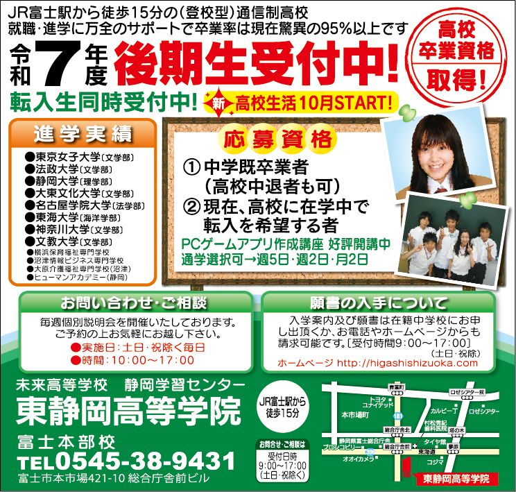 | 学校名 | 東静岡高等学院 富士本部校 |