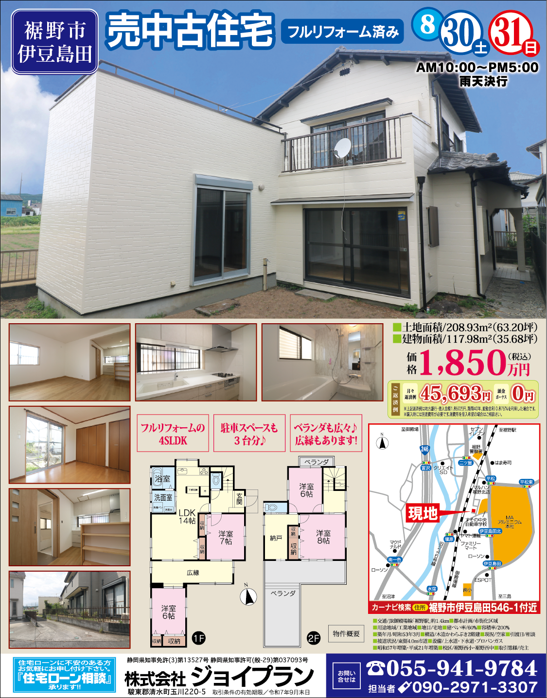 土地面積:208.93㎡(63.20坪) 建物面積:117.98㎡(35.68坪)