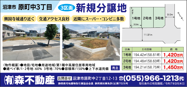 3区画分譲地/沼津市原町中3丁目