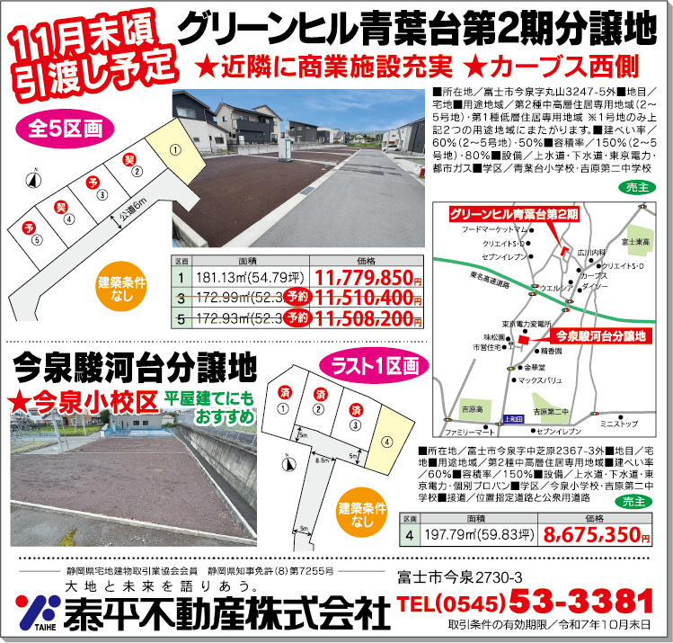 富士市今泉・グリーンヒル青葉台第2期分譲地 販売中!