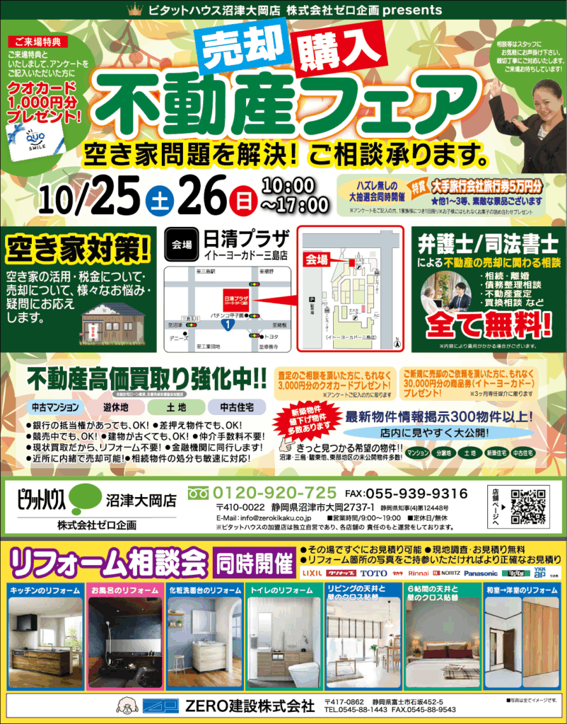 ★不動産売却相談でクオカード3,000円分 不動産購入相談でクオカード1,000円分プレゼント